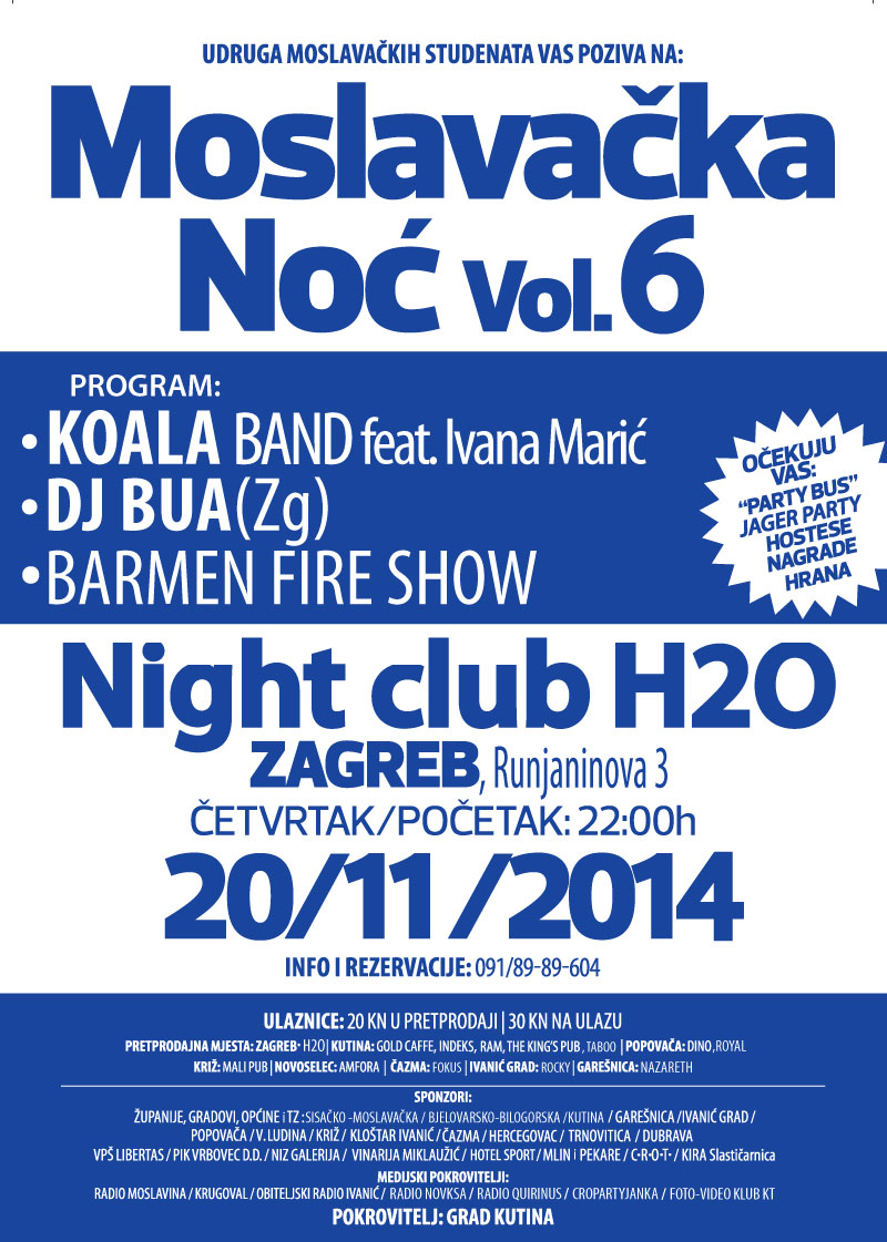 UDRUGA MOSLAVAČKIH STUDENATA POZIVA NA 6. MOSLAVAČKU NOĆ - Noć bez granica ! Fakultet je počeo, a s njim i obaveze, predavanja, kolokviji, ispiti... Prije nego to sve krene, donosimo vam tulum nad tulumima kako bi se dobro zabavili prije studentskih obaveza:) Ispričnice za fax se pišu, uzima se godišnji i slobodni dani na poslu...jer...stiže dugoočekivana noć!