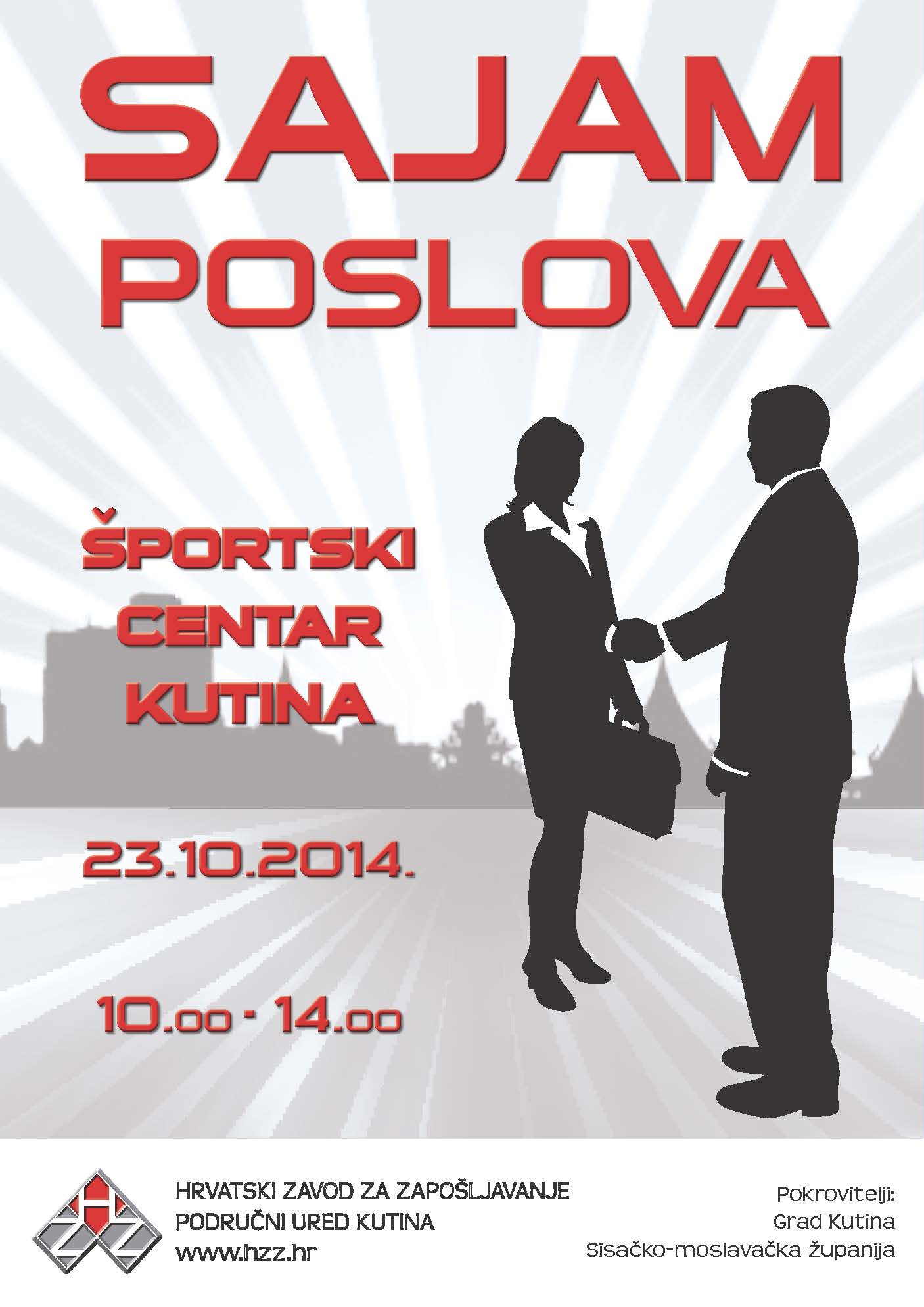 „Sajam poslova će se održati 23.10.2014. u Športskom centru Kutina, Hrvatskih branitelja 8, Kutina, s početkom u 10,00 sati.